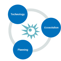 有限会社サン・アイカンパニーの社名は、そのシンボルマークが表すように「サン=太陽」「アイ=目」を意味しています。太陽は人々の暮らしをいつも明るく照らし、実りやエネルギーの元となる存在。目は常に周りに目配りができることを意味しています。それは工事や業務だけではなくスタッフや関わる人々、環境などすべてにおいてそうありたいという理念そのものです。